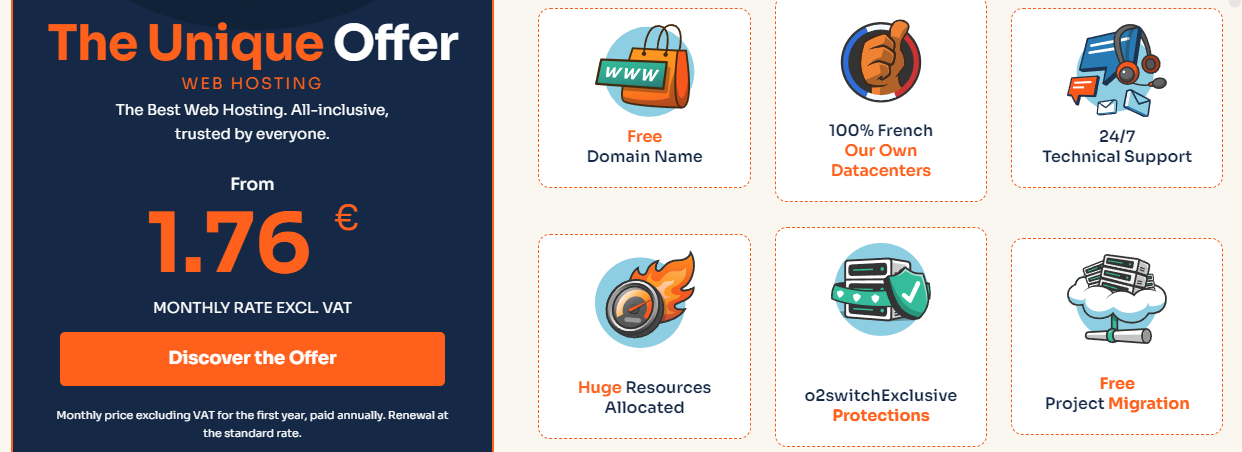 Avec son modèle tout-en-un, o2switch bouscule les codes de l’hébergement web traditionnel. En proposant une offre unique, puissante et accessible, la marque répond parfaitement aux besoins des créateurs de sites qui recherchent à la fois efficacité, liberté et transparence.