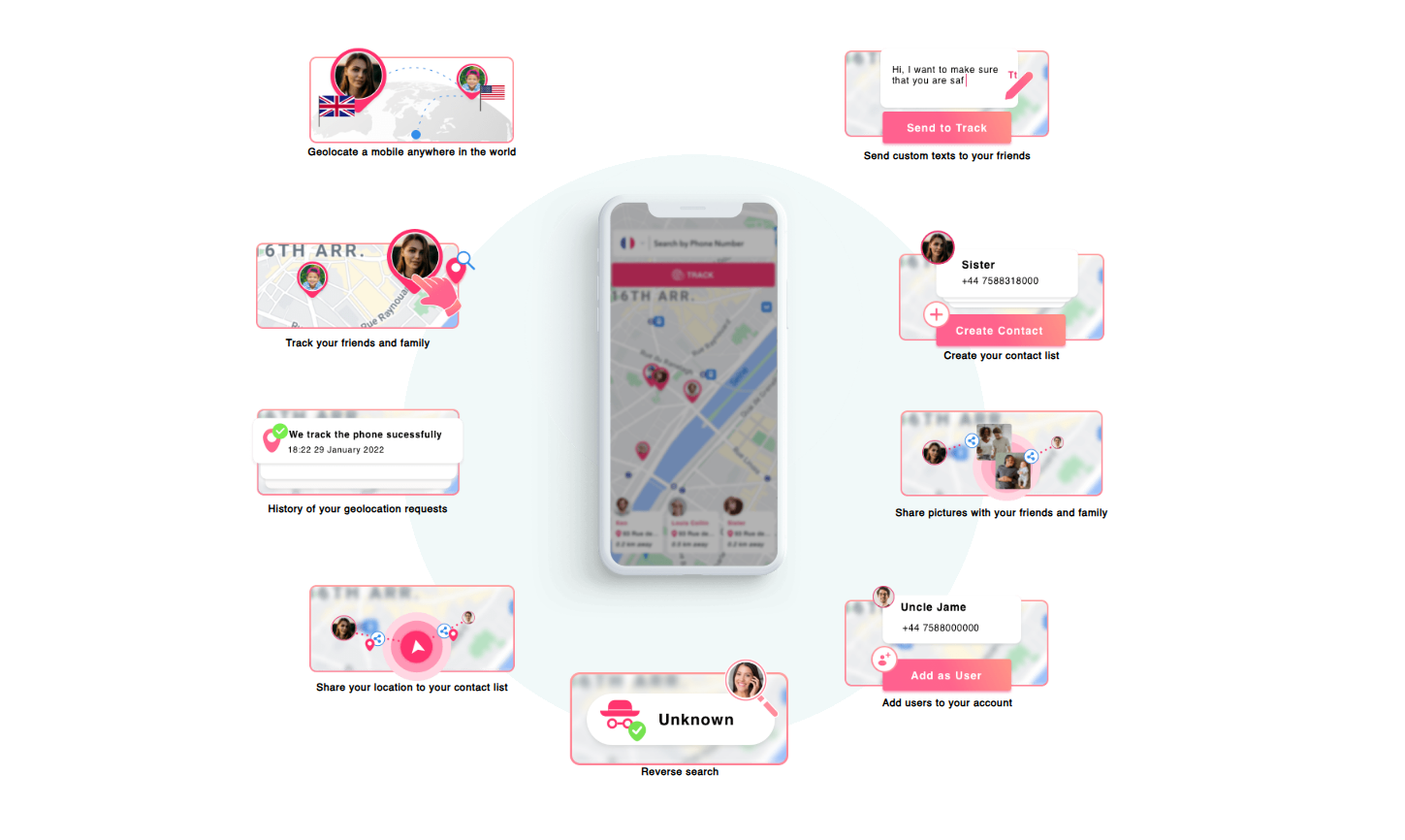 L’abonnement donne accès à des outils pensés pour simplifier la localisation de téléphone et la communication. Les utilisateurs peuvent géolocaliser un mobile partout dans le monde, consulter l’historique des demandes de localisation et partager leur position avec des contacts de confiance.