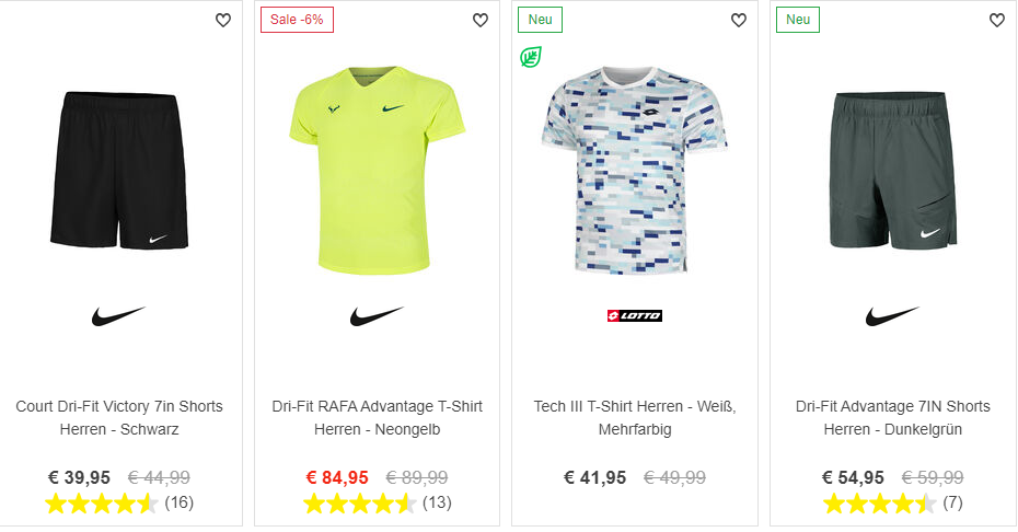 Beim Tennis gehen Komfort und Stil Hand in Hand. Tennis-Point bietet eine beeindruckende Auswahl an Bekleidung, die Leistung mit Mode verbindet. Spieler können aus atmungsaktiven, feuchtigkeitsableitenden Stoffen wählen, die sie bei langen Spielen kühl und bequem halten, während sie gleichzeitig ihren einzigartigen Stil mit trendigen Designs zum Ausdruck bringen.